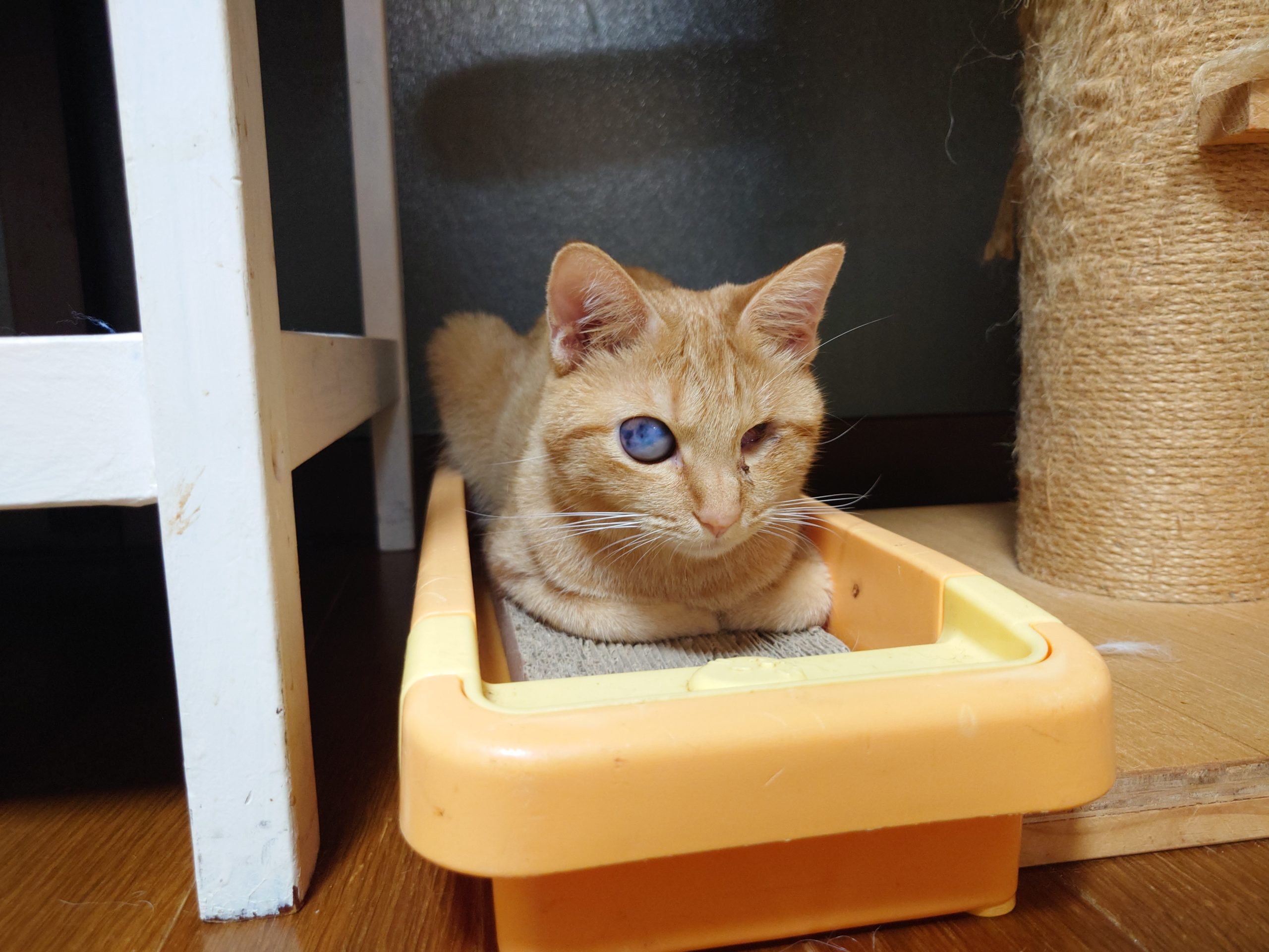 チャミ メス ひどい猫風邪で自力でご飯が食べられない状態でアベニールにやってきたチャミ 必至のケアで目の障害は残りましたが今ではご飯大好き遊び好きな子に成長しました!目の白濁、突出はありますが完全に失明しているわけではありまりません!チャミの全てを理解し可愛がってくださる里親さん大募集中です!